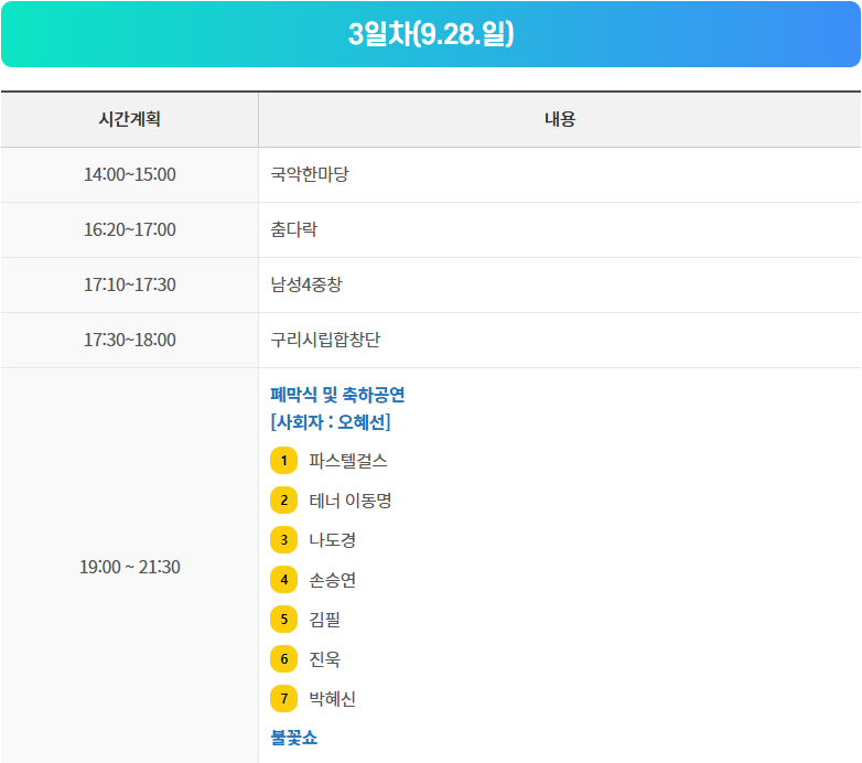 - 2025. 9. 26(금) ~ 9. 28(일) / 3일간