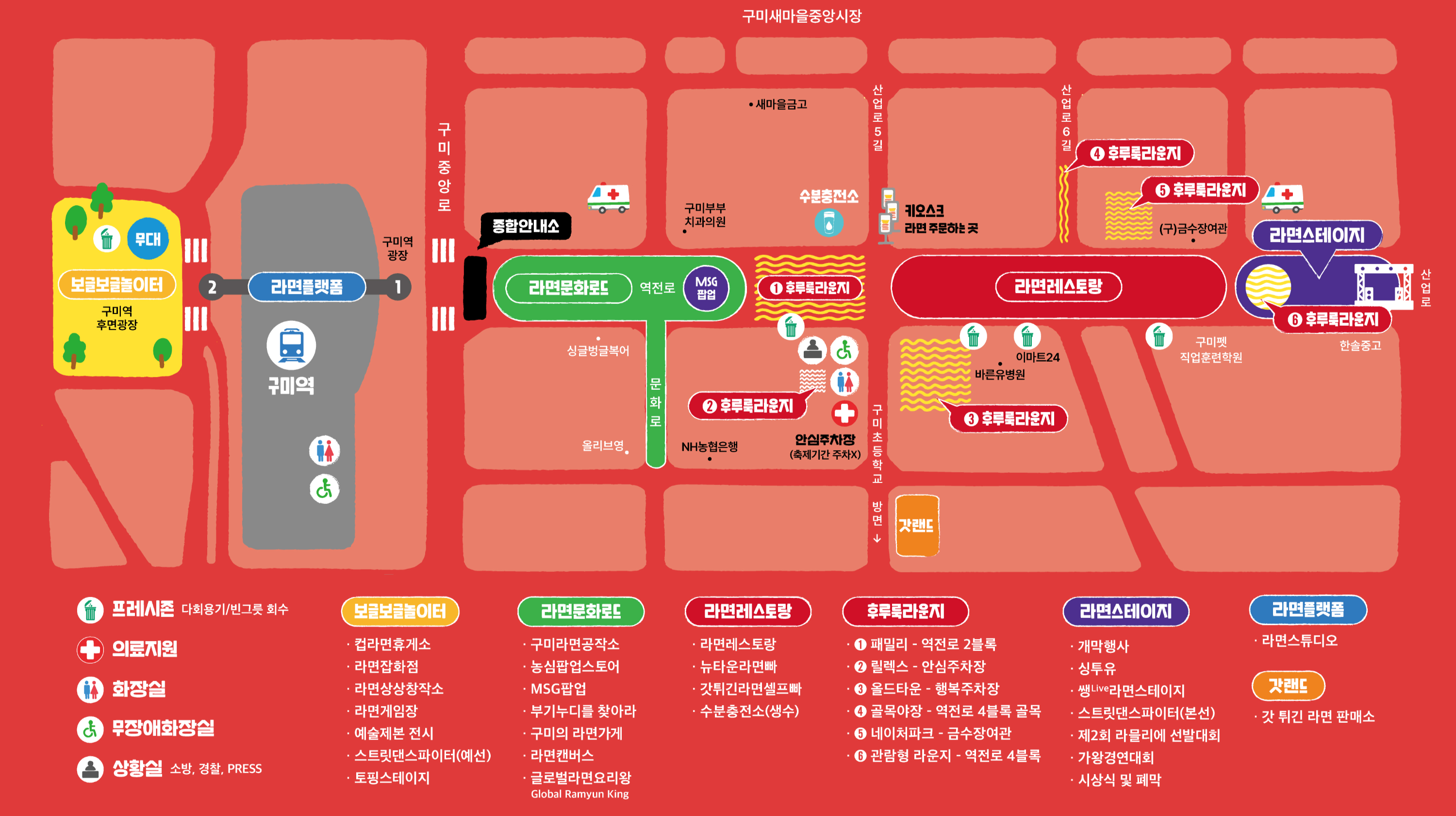 | 라면문화로드 | 라면공작소·농심팝업·MSG마켓·부기누디 이벤트 | 역전시장 일대 |