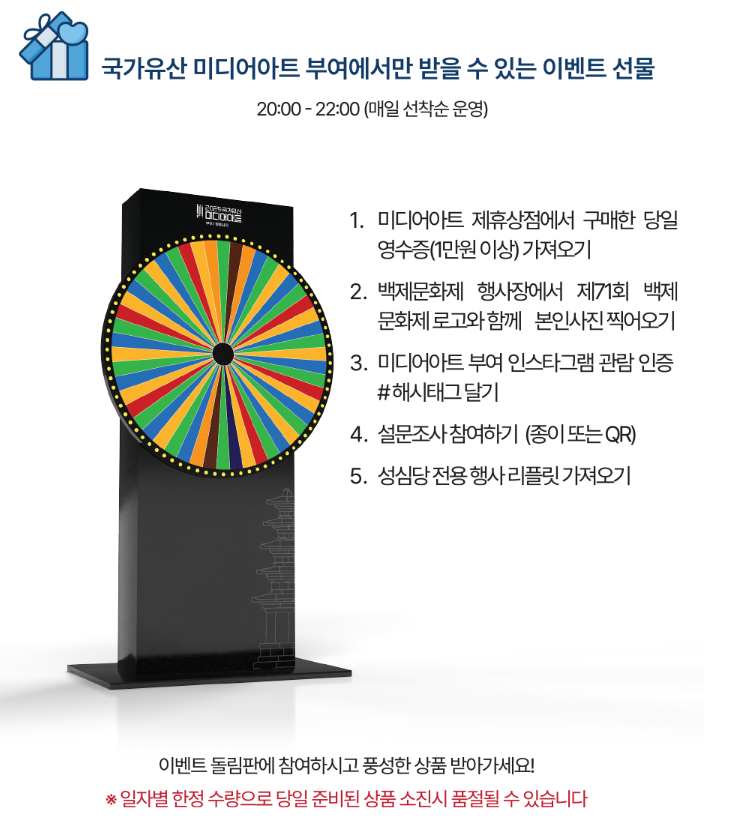 - 행사시간 : 19:00 ~ 22:00 (개막일 10.2는 세계유산등재 10주년 기념행사로 21:00 이후 정상운영)