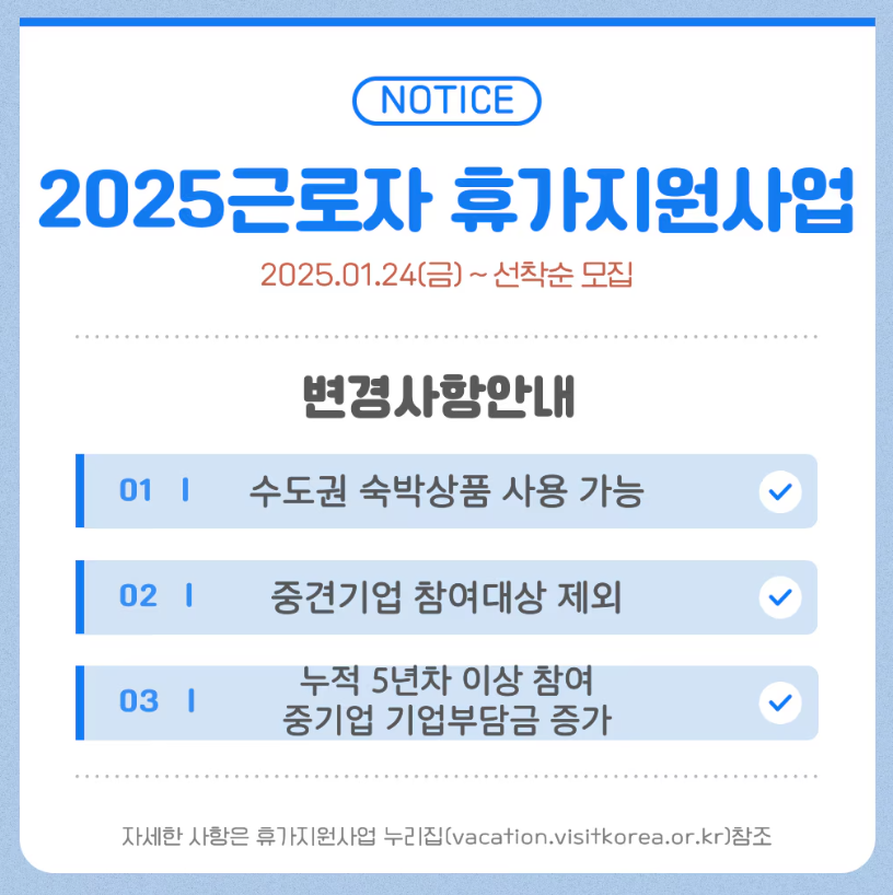 2025년 근로자 휴가지원사업에서는 몇 가지 중요한 변경 사항이 있습니다.