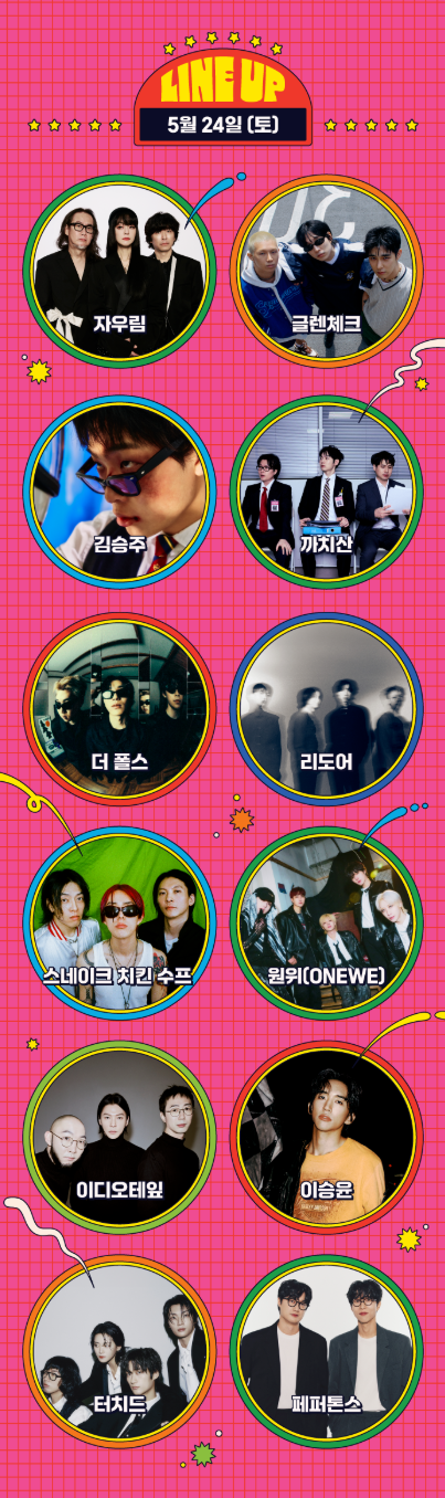- 5월 24일 : 자우림, 글렌체크, 김승주, 까치산, 더 폴스, 리도어, 스네이크 치킨 수프, 원위, 이디오 테잎, 이승윤, 터치드, 페퍼톤스