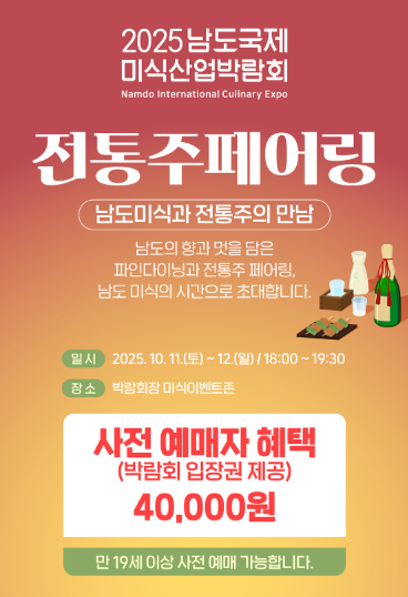 - 남도미식 주류페어링(전통주): 2025.10.11 ~ 2025.10.12