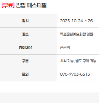 - 2025 전남 세계 김밥페스티벌: 2025. 10.10~10.12