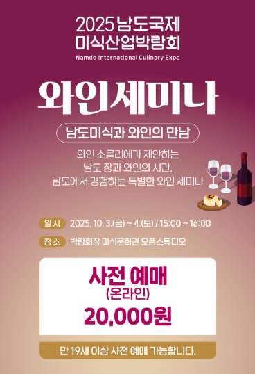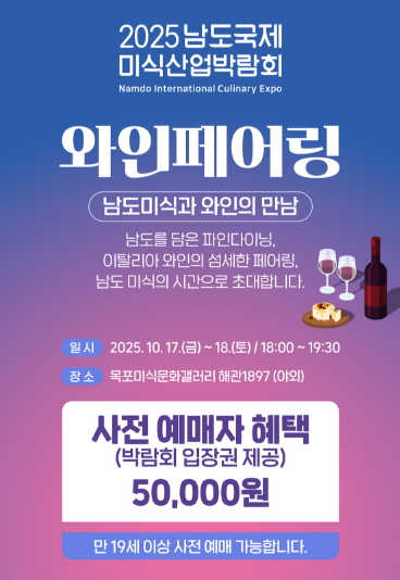 - 남도미식 주류페어링(와인): 2025.10.17 ~ 2025.10.18