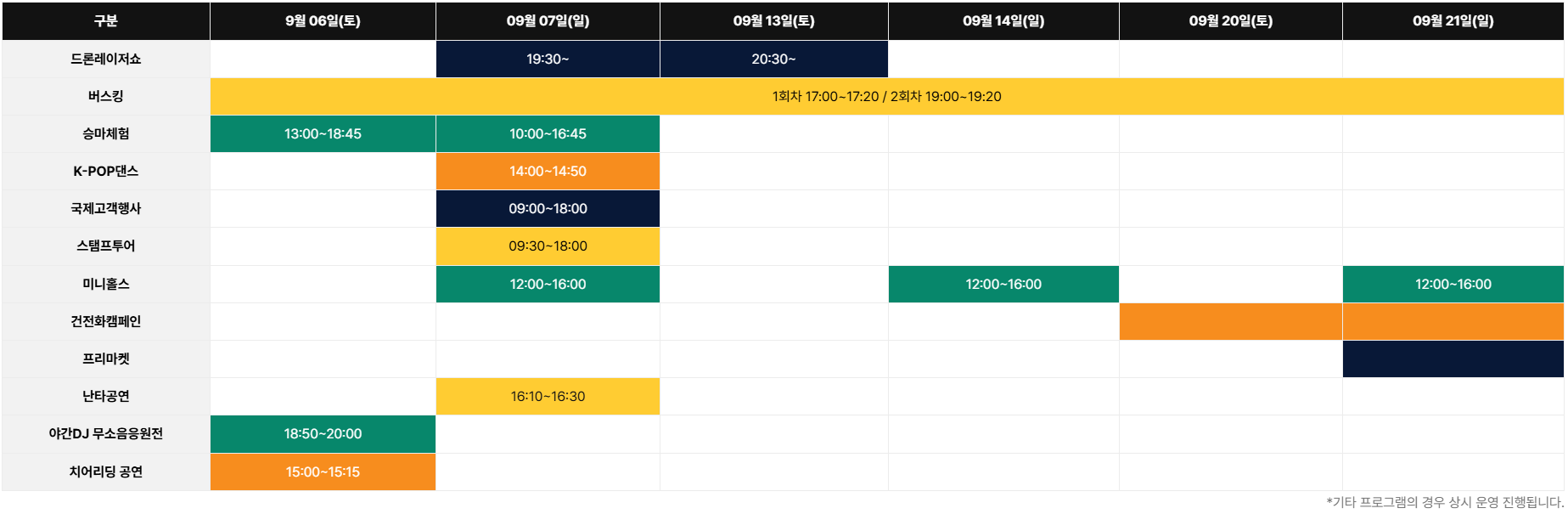 - 특별 드론레이저쇼: 9월 7일(일), 13일(토)