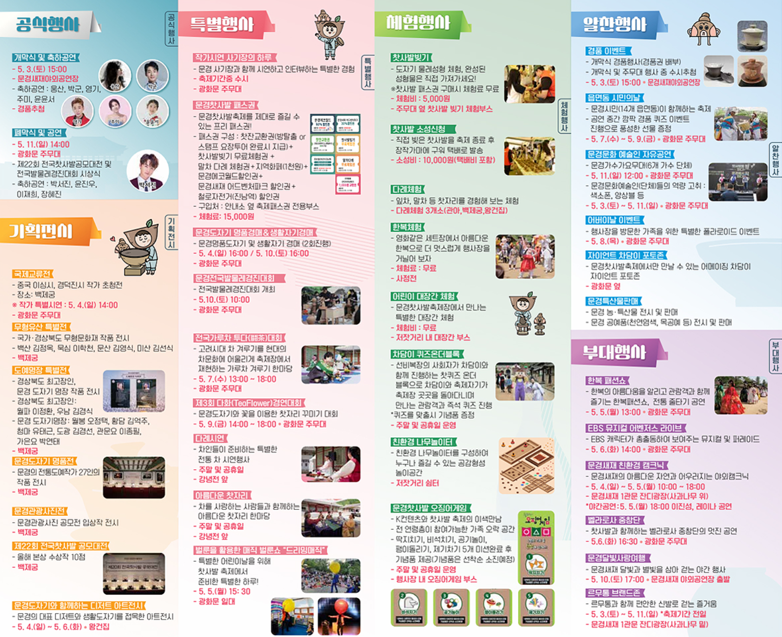 - 찻사발 만들기 체험 : 참가자들이 직접 찻사발을 만들어 볼 수 있는 프로그램 / 체험료 5,000원