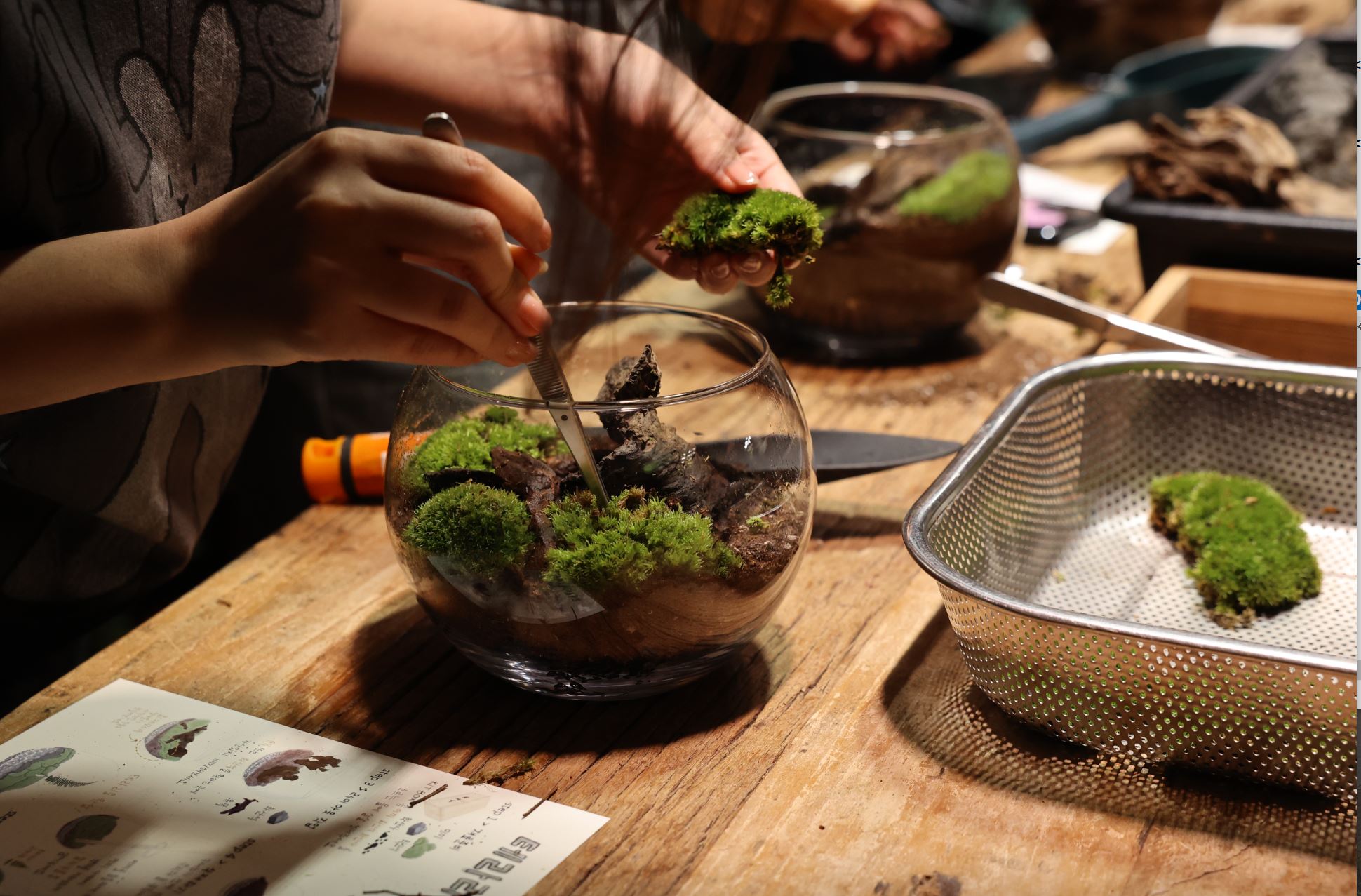 - 이끼의 생태 이해 → 재료 배치 → 완성 및 관리법 안내