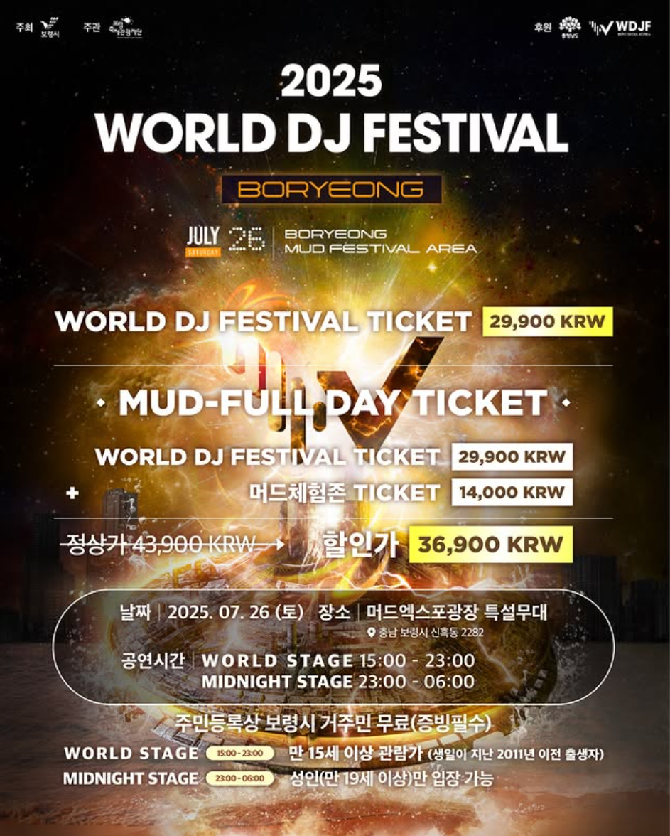 DJ축제+보령머드축제까지! 2025 WDJF 보령 | 티켓·라인업·셔틀 총정리