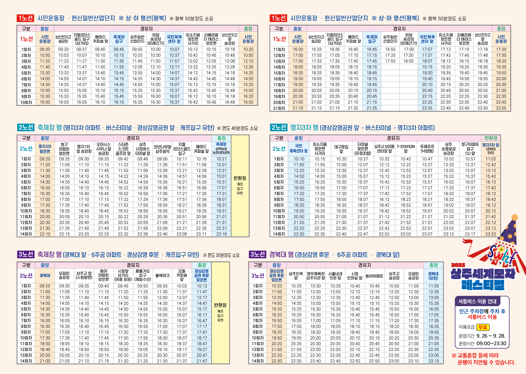 무료 셔틀버스 안내 (운영: 09:00 ~ 23:30)