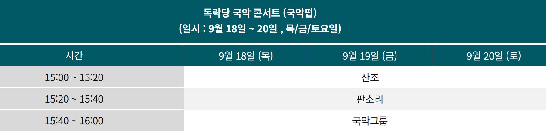 - 무료공연(국악펍)은 선착순 사전예약