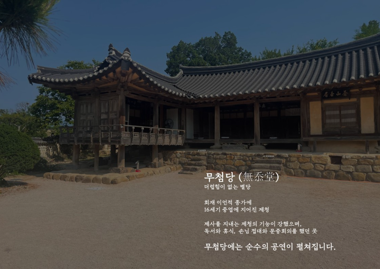 - 문화해설사와 함께 유물전시관을 시작으로 심수정, 무첨당, 물봉동산, 향단까지 둘러보며, 전통 국악 판소리 공연도 함께 감상