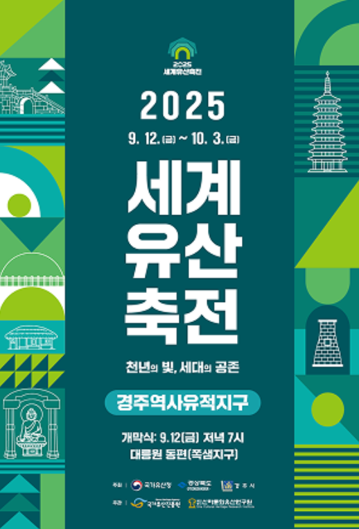 안녕하세요! 오는 2025년 9월 12일(금) ~ 10월 3일(금), 경주역사유적지구에서 세계유산축전이 열립니다.