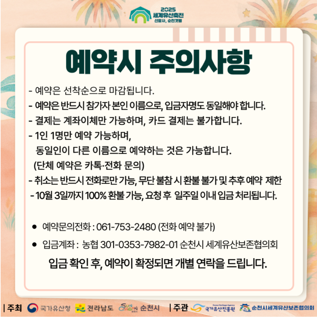 2025 세계유산축전 순천 선암사·갯벌 예약 프로그램 안내