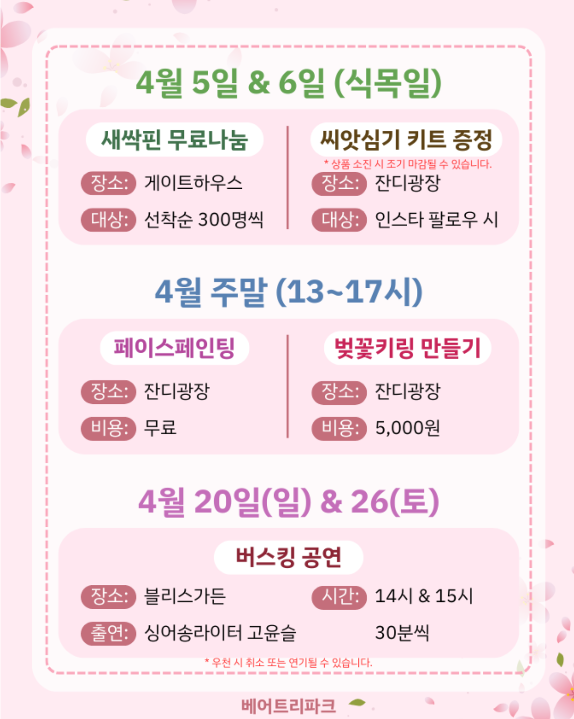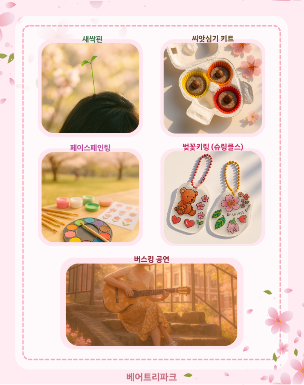 - 4월 주말 13시 ~ 17시 페이스페인팅, 벚꽃키링 만들기