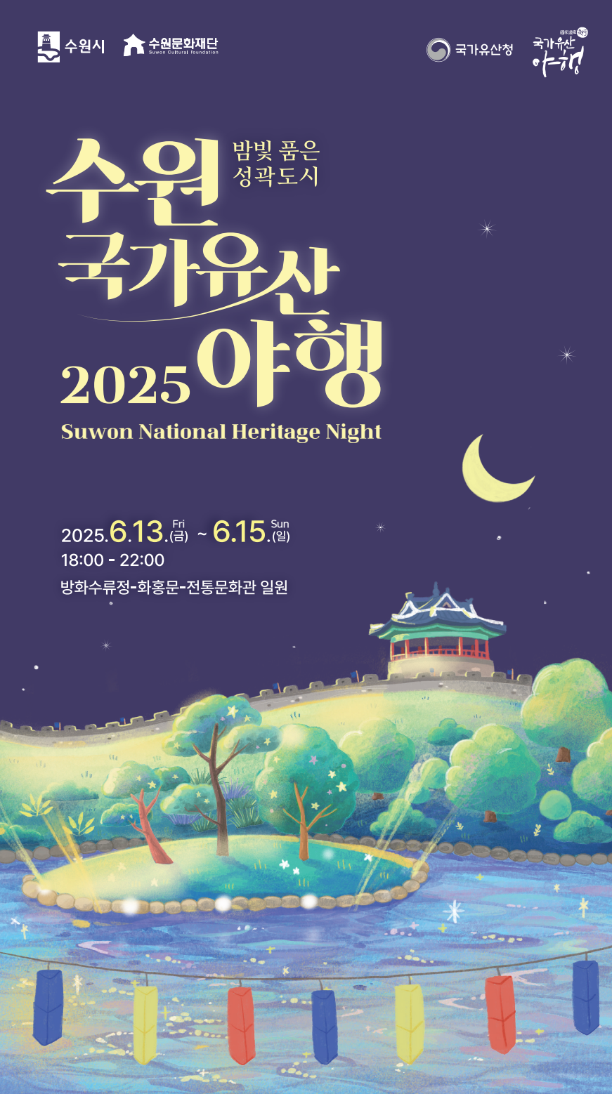 역사와 문화가 살아 숨 쉬는 수원에서 단 3일간만 진행되는 2025 수원 국가유산 야행에 여러분을 초대합니다.