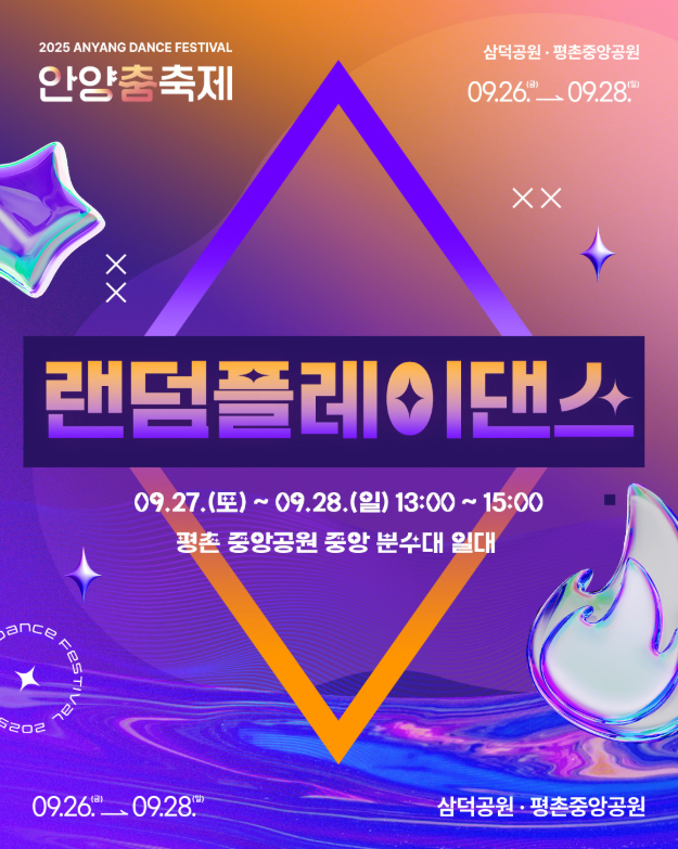 - 랜덤플레이댄스: 09.27(토)~09.28(일) 13:00~15:00 평촌 중앙공원 중앙 분수대 일대