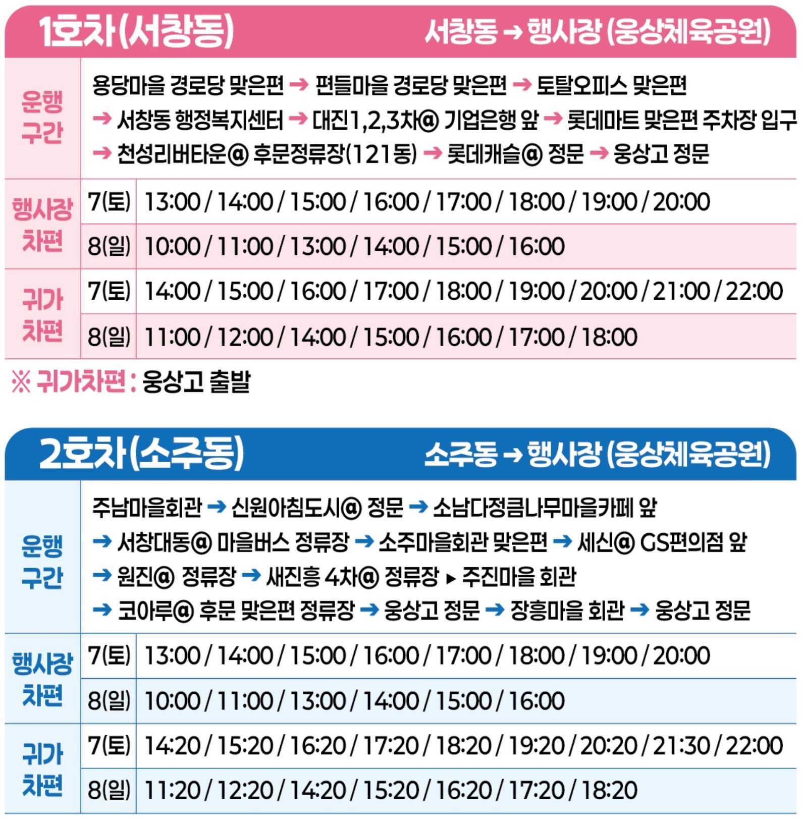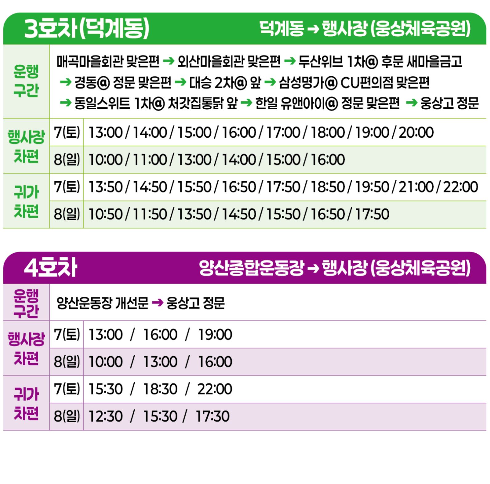 - 임시주차장 : 학교 운동장 및 웅상체육공원 주차장(웅상여중, 웅상중, 웅상고, 천성초)