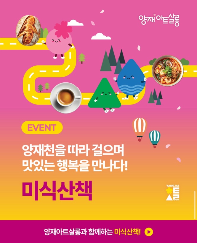 - 내 용 : 공예품·일상소품 판매, , 특별문화공연, 버스킹, 해치 아트벌룬 전시, 양재천천노래방(시민노래자랑), 푸드존, 체험 등