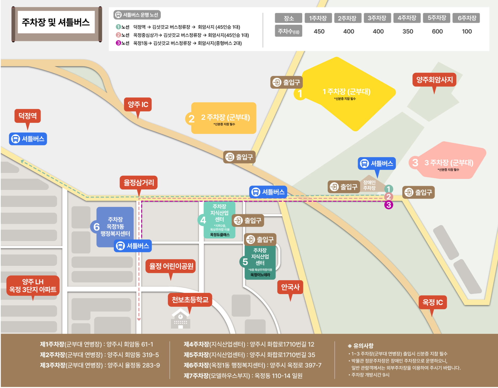 - 대중교통 : 지하철 1호선 양주역 하차 후 버스 이용