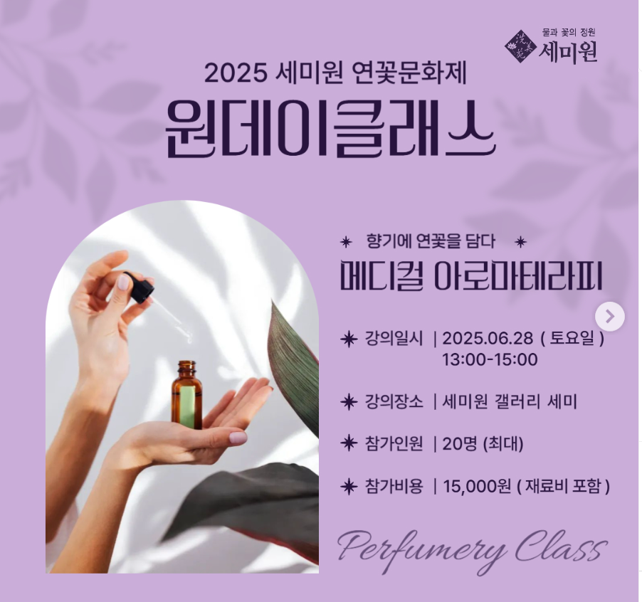 | 천연 비누만들기 체험 | 4월~10월 (연꽃문화제 기간 토,일 상설운영) 40분 소요 |