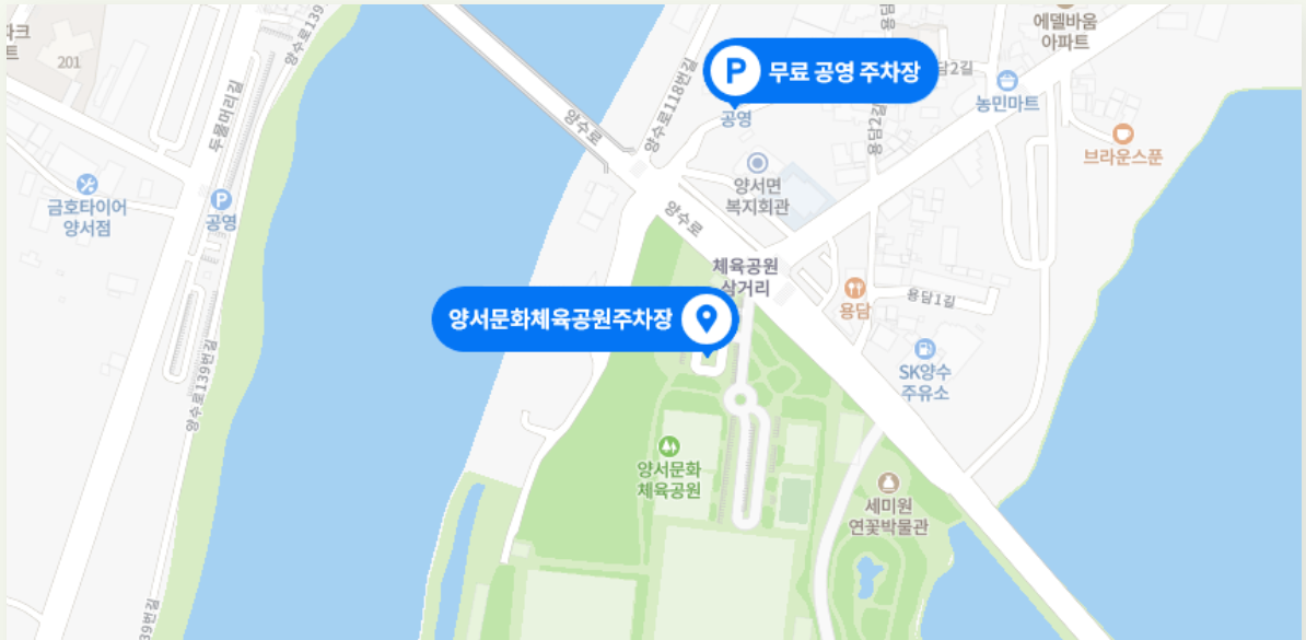 - 주차 가능: 세미원 옆 양서문화체육공원 주차장, 공영주차장