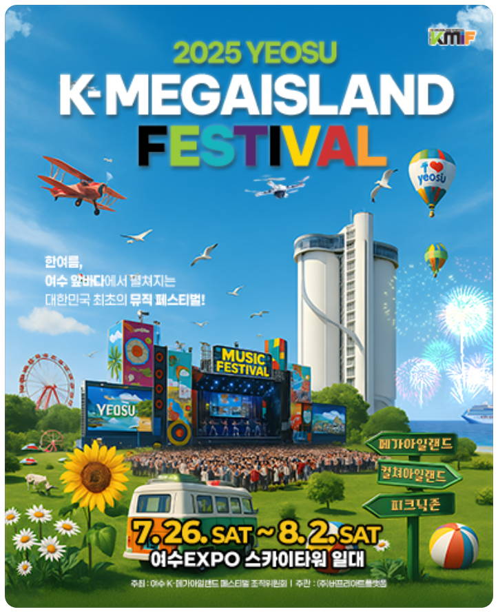 2025 여수 K-메가아일랜드 페스티벌이 올여름 대한민국 최대 규모의 음악 축제로 여러분을 찾아갑니다!