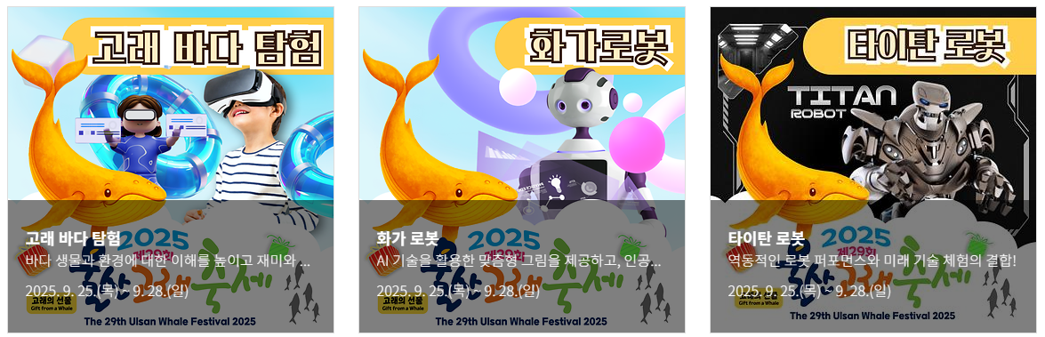 2025 울산고래축제는 울산을 대표하는 가을 축제로, 남녀노소 모두 즐길 수 있는 공연·체험·전시·퍼레이드가 준비되어 있습니다.