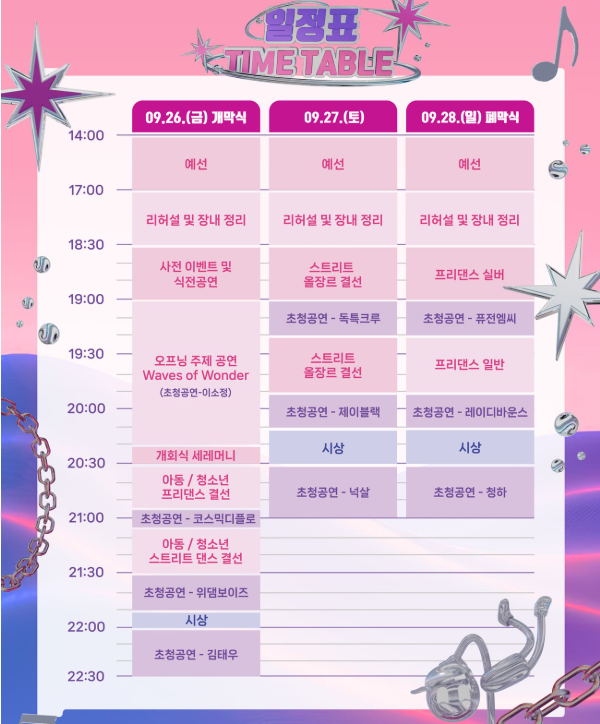 - K-댄스 경연 – 스트리트댄스, 브레이킹, 퍼포먼스 무대