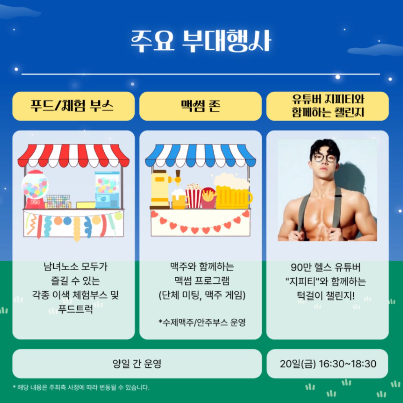 - 16:00-21:00 이색 체험부스 - 누구나 즐길 수 있는 체험 및 홍보부스