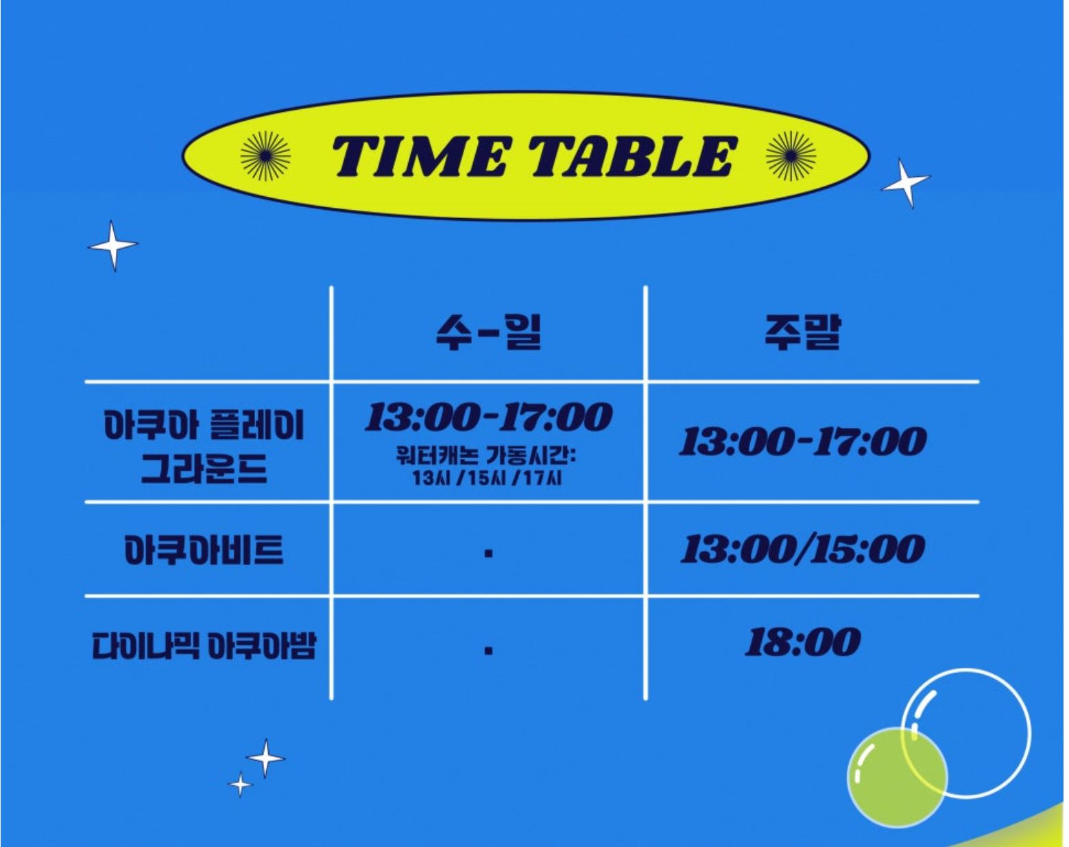 - 아쿠아 플레이그라운드: 매주 수~일 13:00-17:00