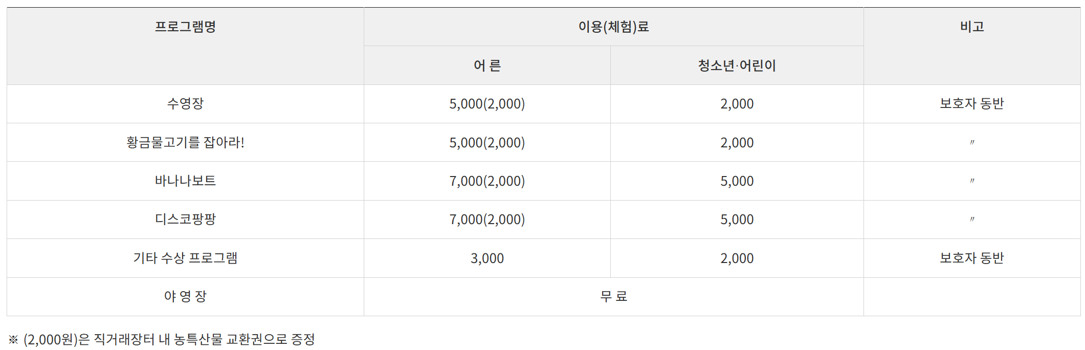 - 수상자전거, 우든보트, 카누, 바나나보트, 디스코팡팡, 상설 물놀이장 등