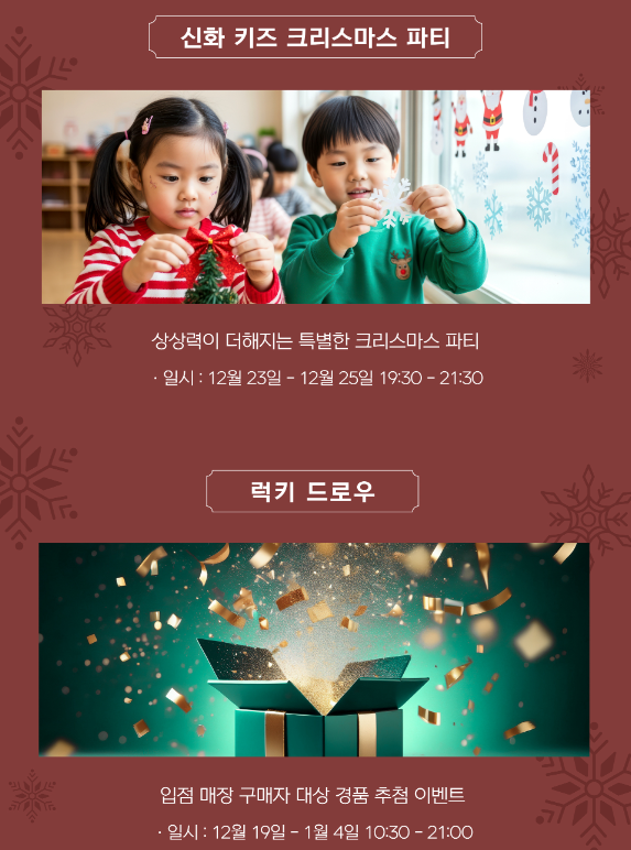 | 럭키 드로우 | 매장 구매자 대상 경품 이벤트 | 12/19 ~ 1/4 |