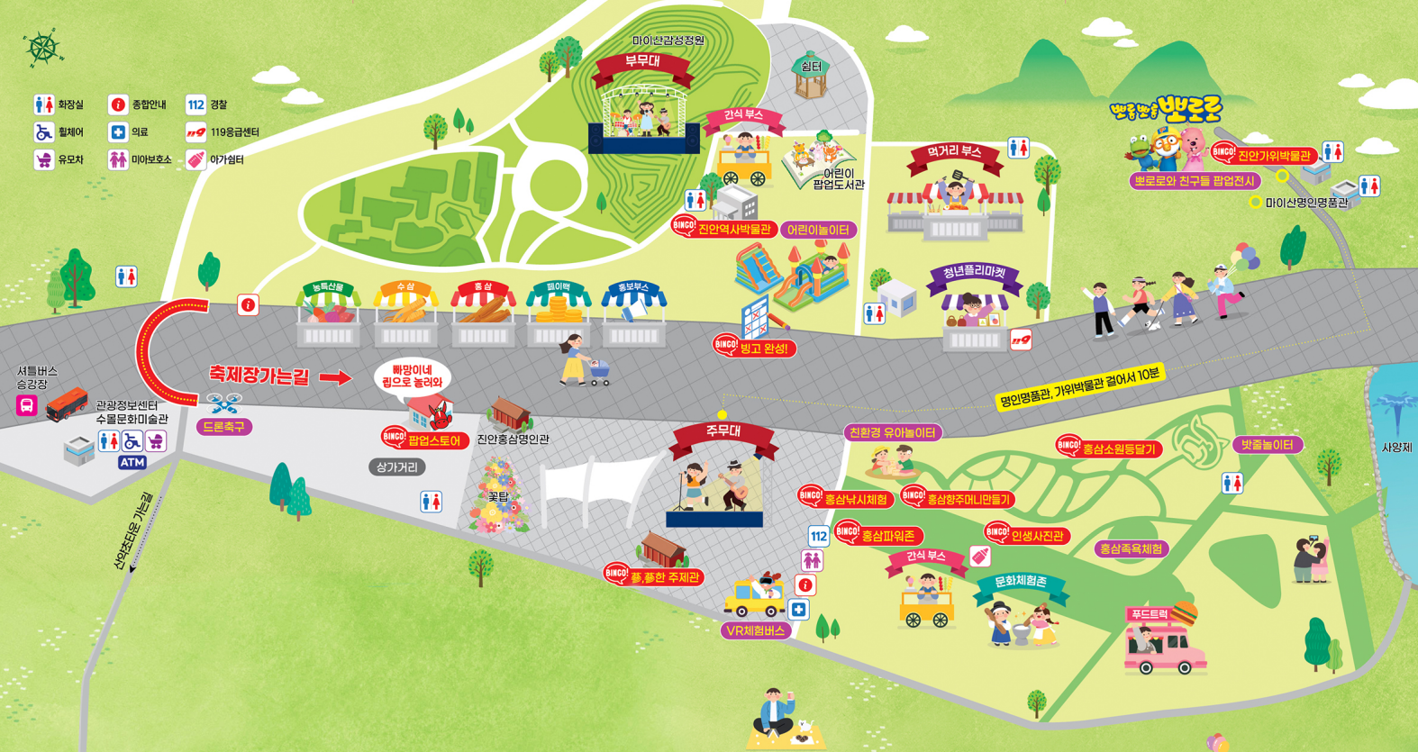 - 아이 동반 방문객 : VR체험버스, 키즈존, 족욕체험장 필수 방문