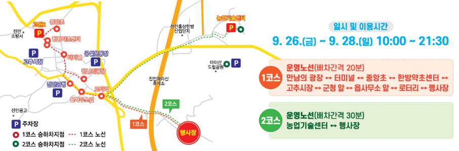 - 축제장은 차량이 전면 통제되오니 셔틀버스를 이용해 주시기 바랍니다.