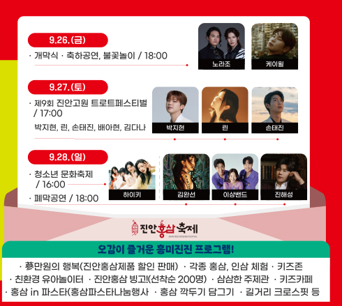 👉 3일간 진행되는 축제에서 홍삼 체험, 대형 공연, 가족 맞춤형 프로그램이 풍성하게 준비되어 있습니다.