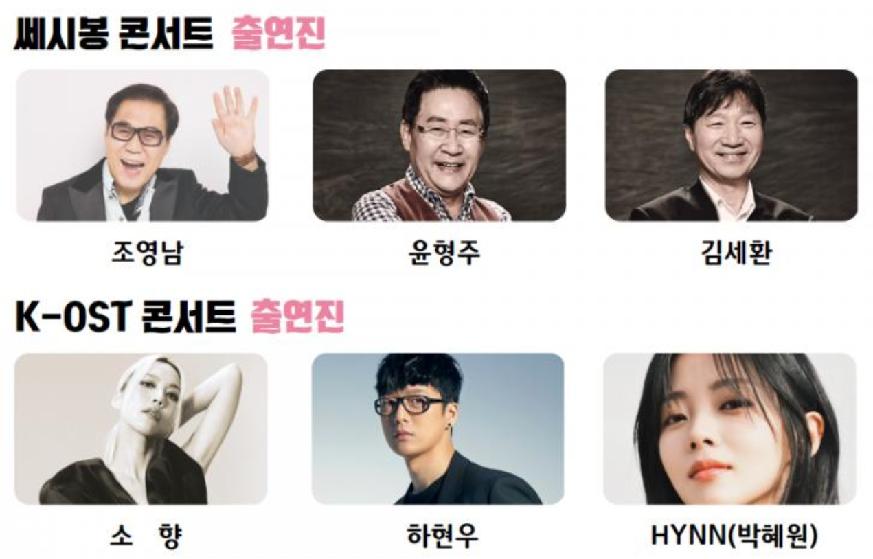 - 쎄시봉 콘서트 : 17:00 라인업-조영남, 윤형주, 김세환