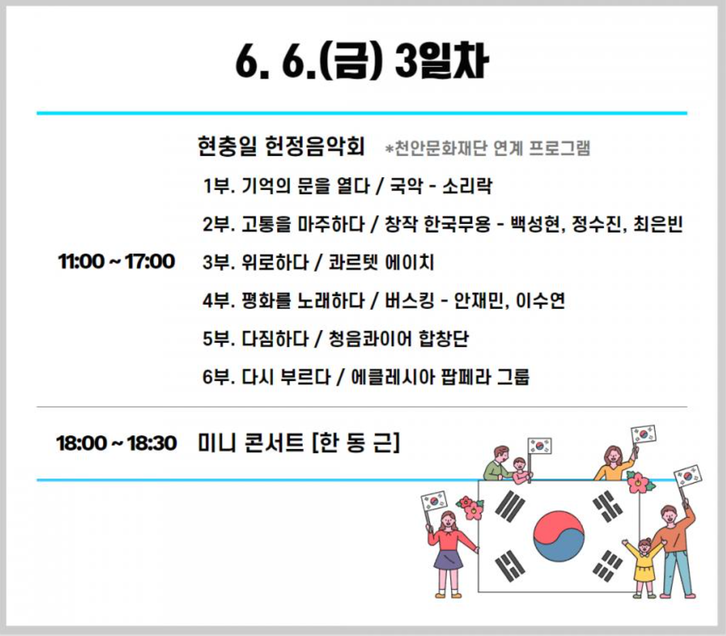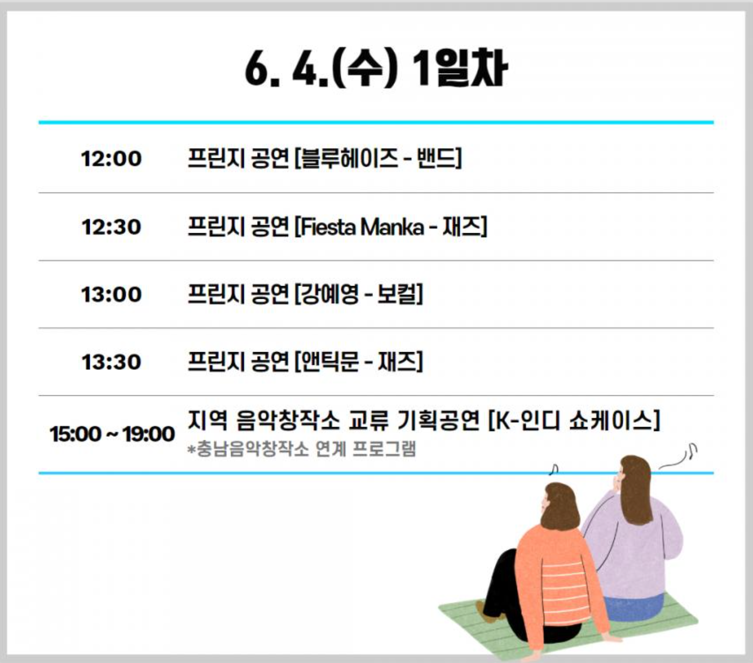 - 미니 콘서트 : 6월 5일(목) 17:00~17:30, 18:00~18:30 ~6월6일(금) 18:00~18:30 /웰컴존