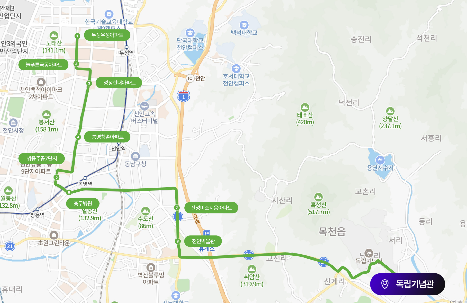 - 주소: 충청남도 천안시 동남구 목천읍 독립기념관로 1
