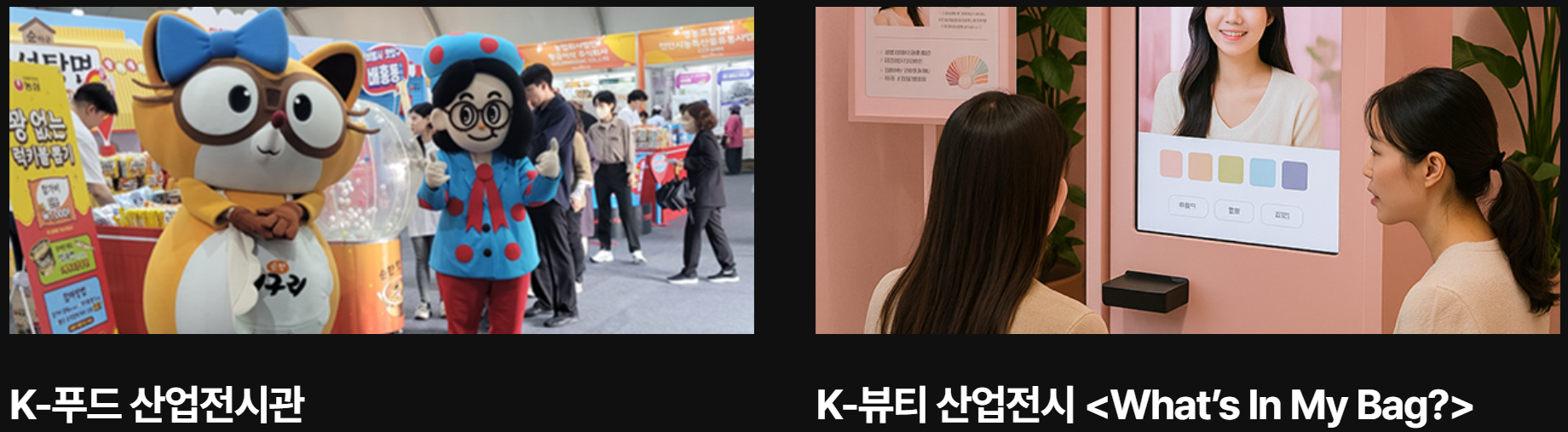 - K-뷰티 산업전시관: 퍼스널 피부분석&인생네컷 등 / 10:00~18:30 / 겨레의 큰마당 주무대 옆 TFS텐트