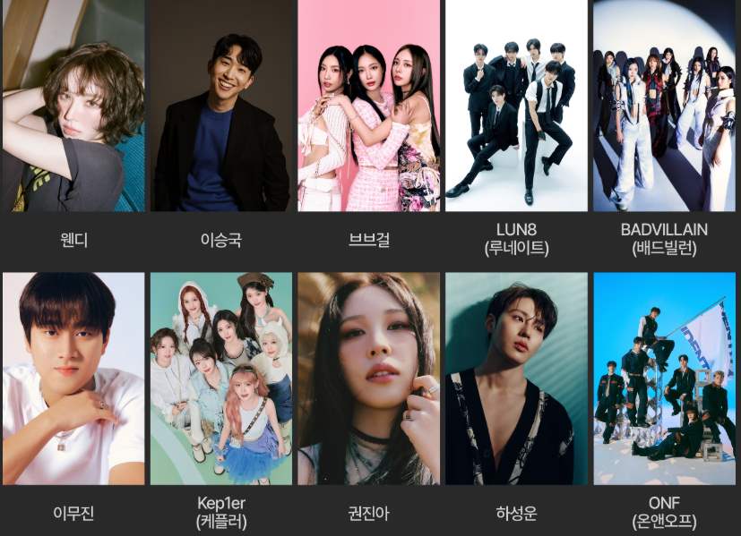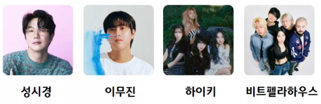 - 개막식 <개막 퍼포먼스, 주제공연, 축하공연> : 19:00 라인업-성시경, 이무진, 하이키, 비트펠라하우스