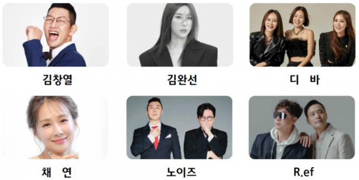 - K-레트로 콘서트<그시절 우리가 좋아했던 K> : 19:30 라인업-김창열, 김완선, 디바, 채연, 노이즈, R.ef