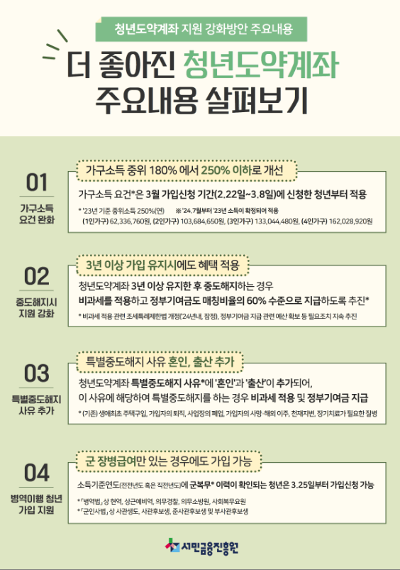 - 가입 자격 확인 : 본인의 소득 및 가구소득 기준이 조건에 부합하는지 확인해야 합니다.