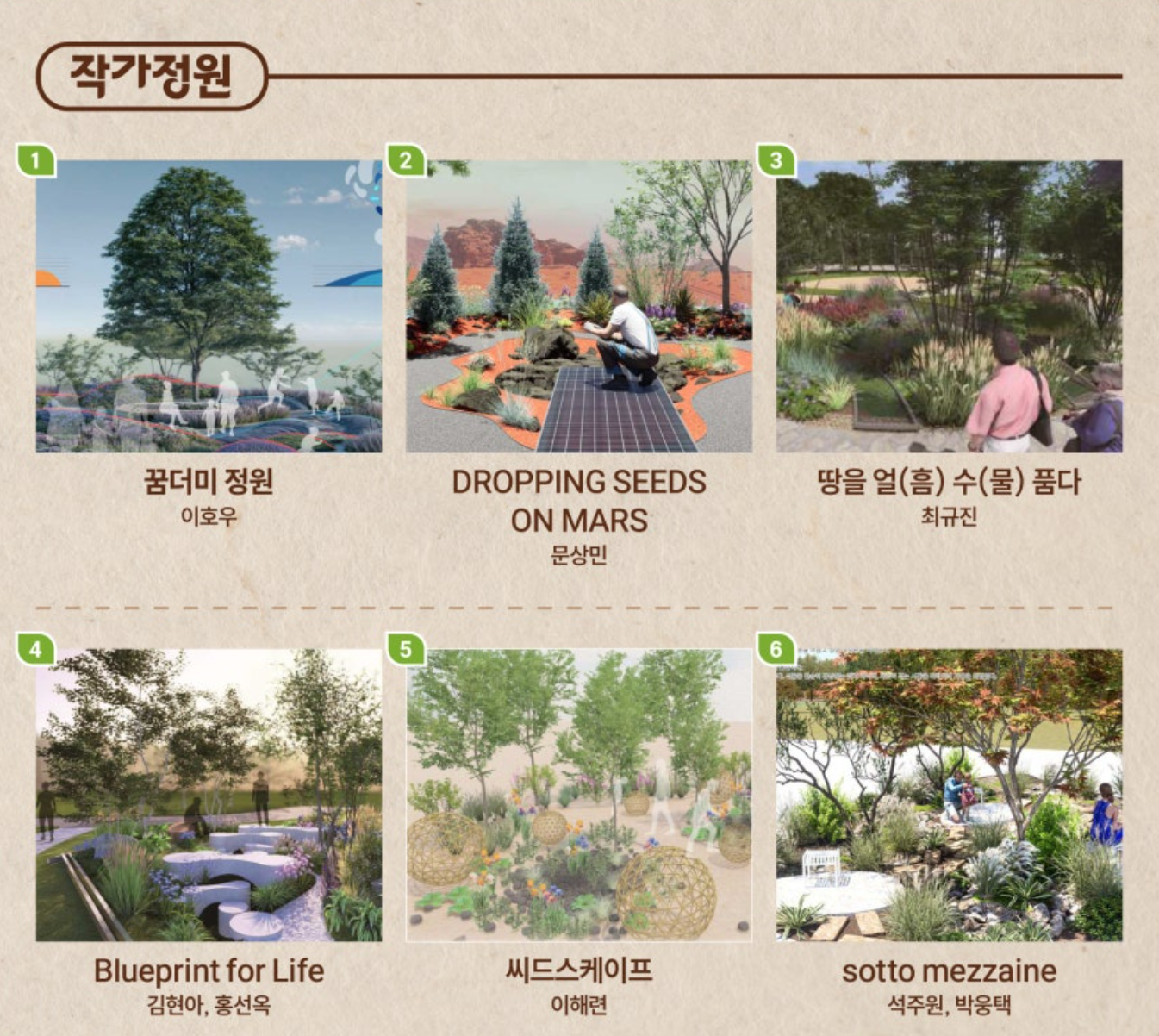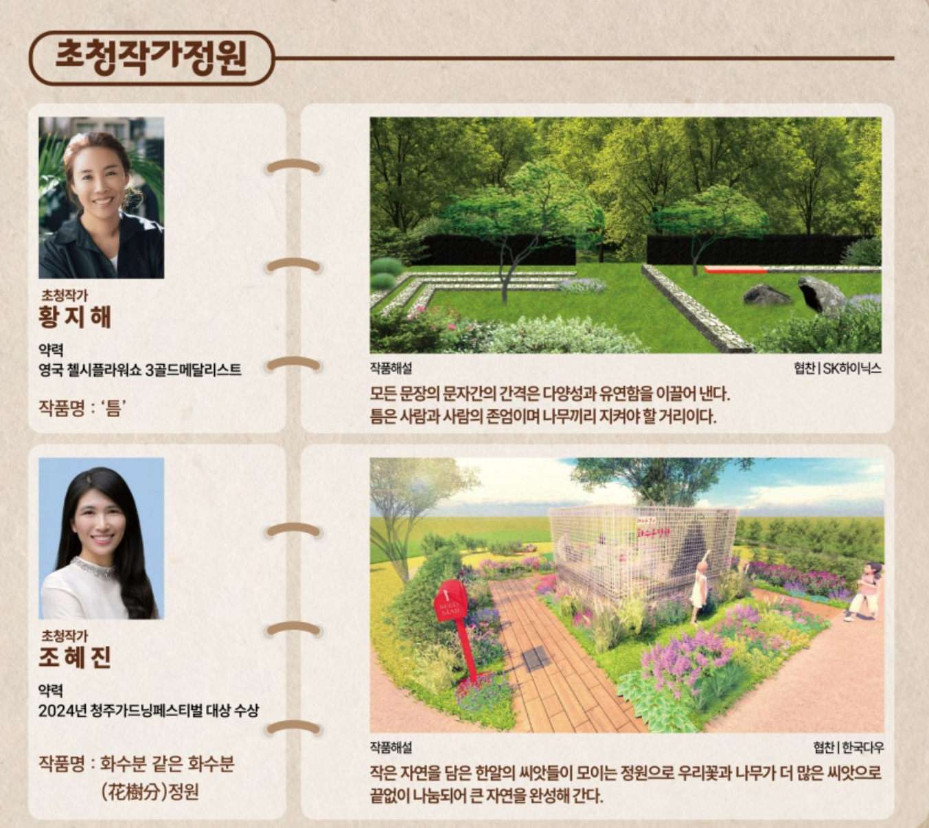 - 초청작가정원 : 영국 첼시플라워쇼 3골드메달리스트 '황지해 작가/ 지난해 가드닝페스티벌 대상 수상자 '조해진작가'