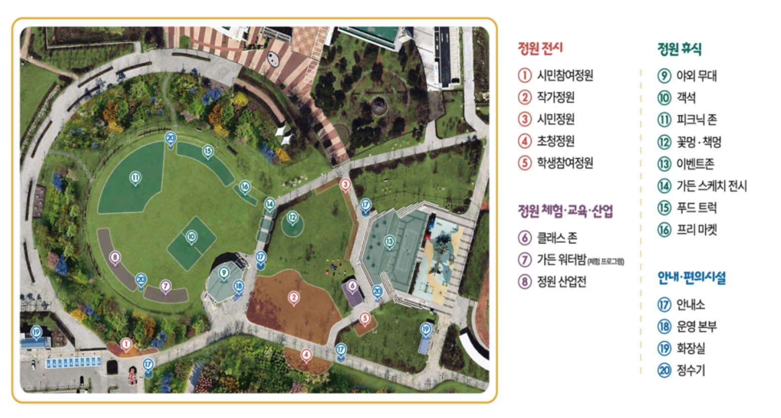 - 가든피크닉 : 그늘쉼터, 파라솔 등으로 쉬는 공간을 마련, 돗자리 제공(한정수량)