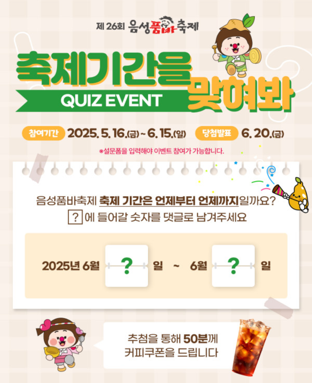 - 당첨발표 : 6월 20일(금) / 음성품바축제 인스타그램