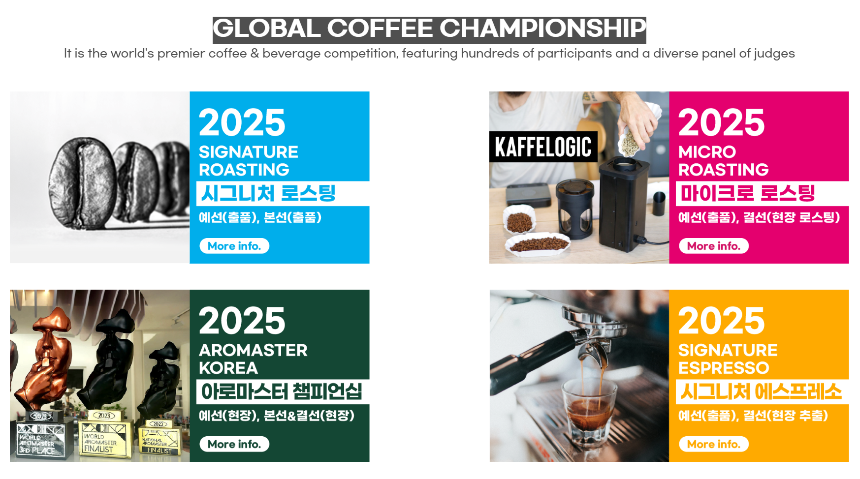 - 세계 최고이 커피 & 음료 대회로 전 세계 20여 개 국이 참여하는 국제 대회입니다.