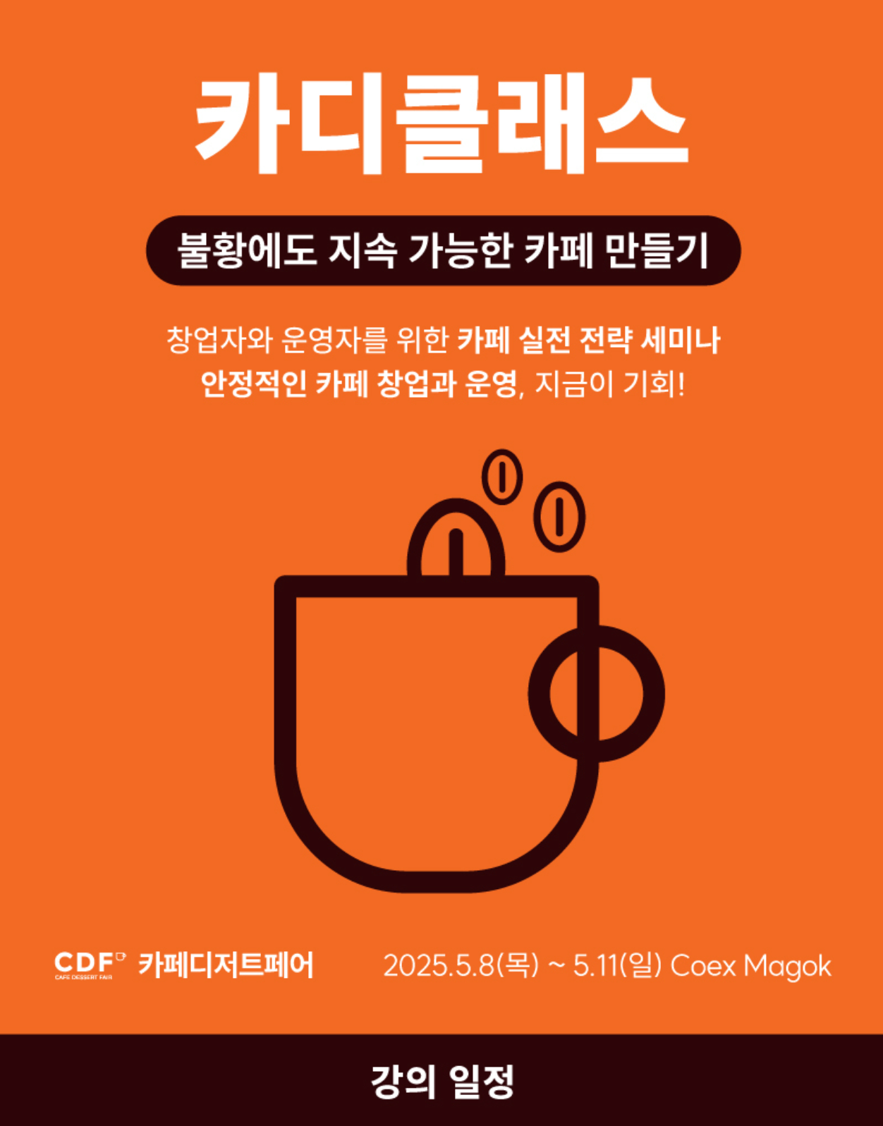 - 5월 10일(토) 11:00 ~ 12:30 고정비 줄이고 효율 높이는 카페 운영법