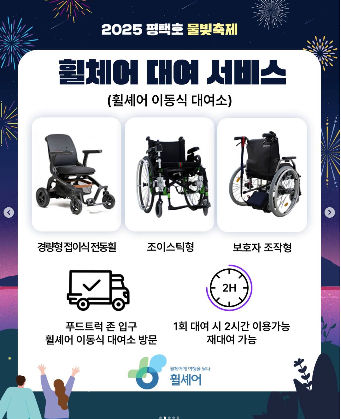 - 휠체어 대여 서비스: 경량형·조이스틱형·보호자 조작형, 1회 대여 시 2시간 무료 대여 가능, 재대여 가능