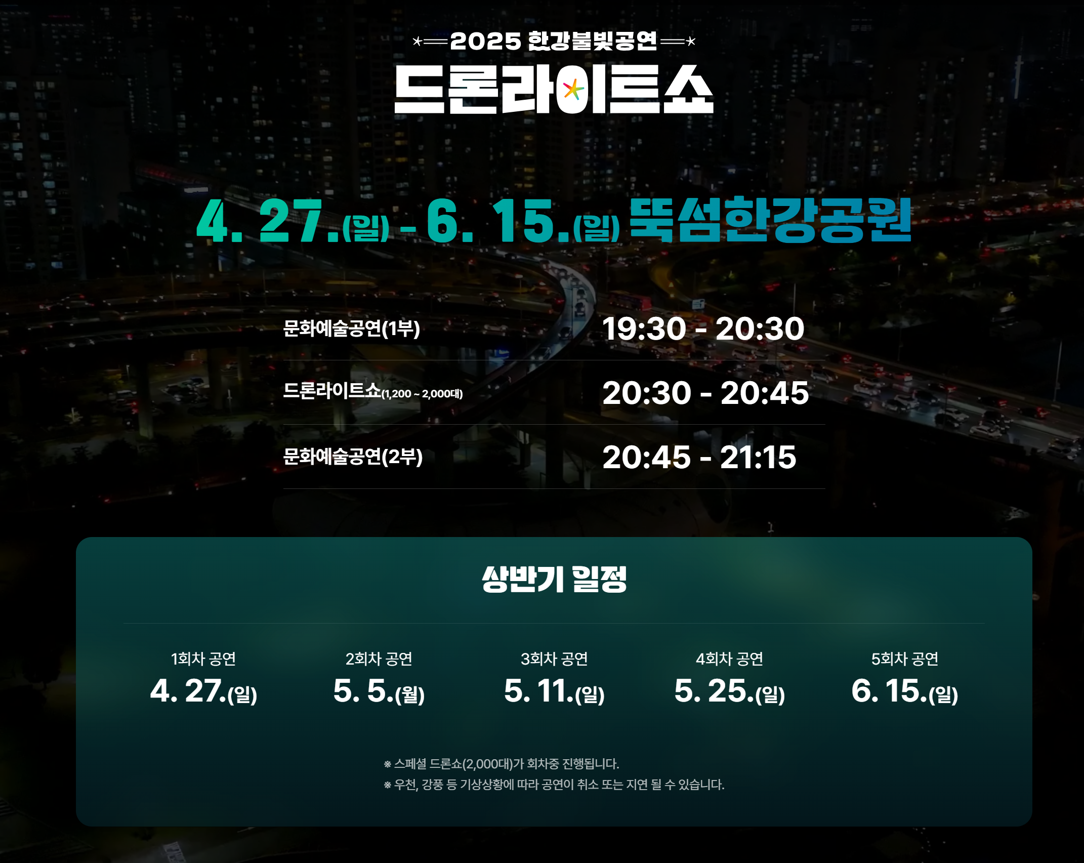 ※ 우천, 강풍 등 기상상황에 따라 공연이 취소 또는 지연 될 수 있습니다.