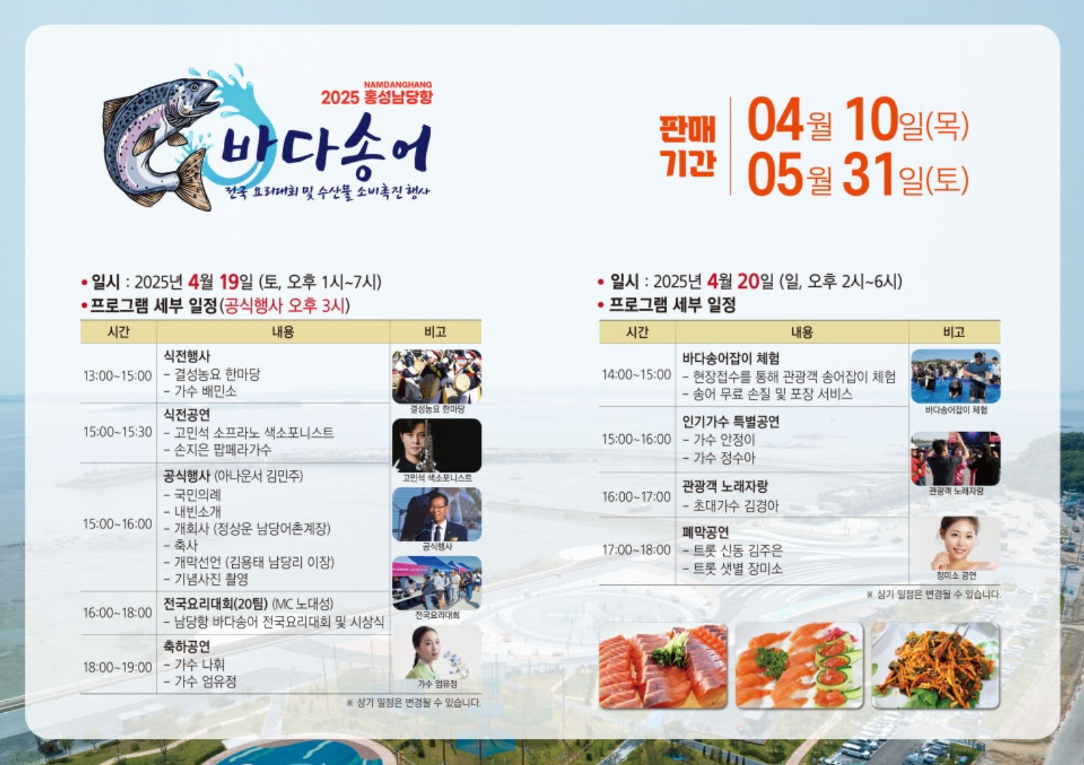 방문 전 체크 포인트: 축제 일정이나 체험 프로그램은 날씨나 현지 상황에 따라 변경될 수 있으니, 방문 전 반드시 공식 홈페이지나 SNS를 확인하세요. 홍성 남당항 바다송어축제 블로그